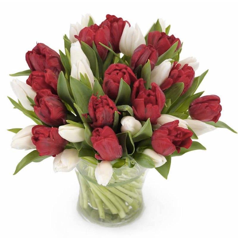 Red and White Tulips in Vase